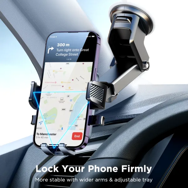 Mikono minene na msingi unaoweza kubadilishwa huzuia simu yako kubaki mahali pake, hata barabarani zenye mashimo. 🛣️